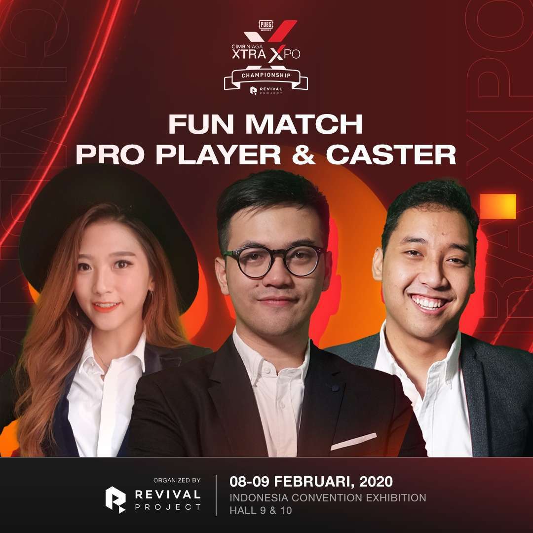Hadir dengan 16 tim PUBG Mobile terbaik di Indonesia, CIMB Niaga Xtra Xpo PUBG Mobile Championship tentunya juga diisi dengan shoutcaster yang sudah tidak asing lagi. Kornet, Ranger Emas, dan Clara Mongstar bakal bakal bertindak sebagai caster yang bakal menemani di dalam game sementara Pulung dan Brenda bakal memandu jalannya turnamen nanti.