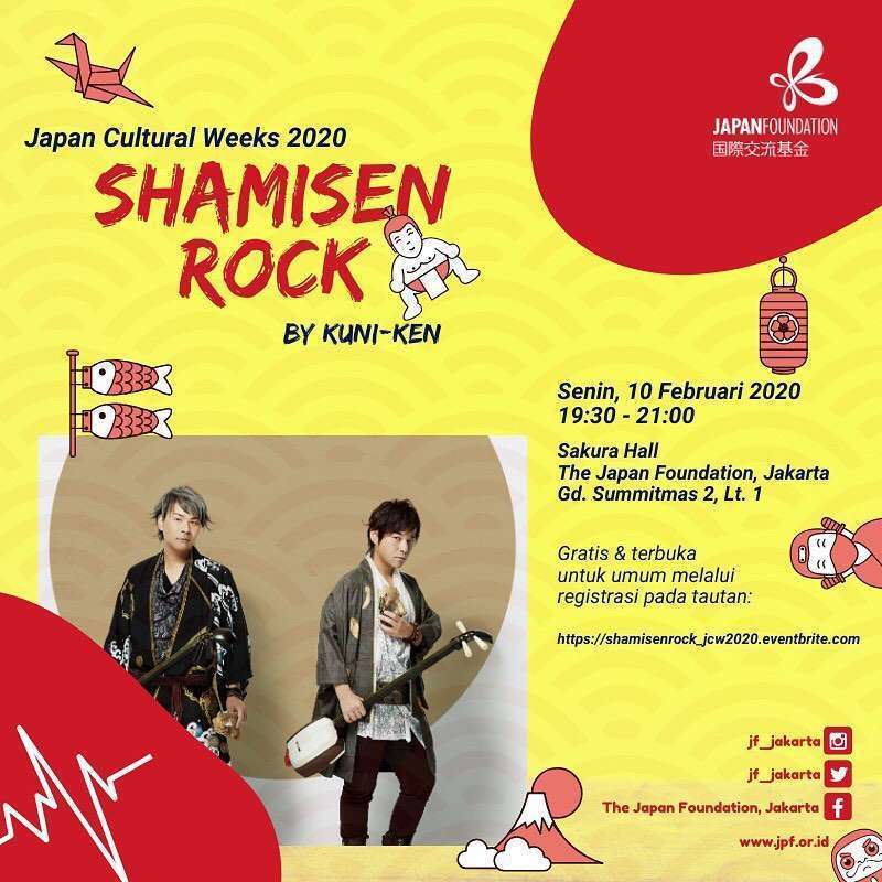 Tahun ini, Japan Cultural Weeks hadir mulai tanggal 10-29 Februari 2020 dengan menghadirkan beragam kegiatan seperti pertunjukan musik, lomba pidato Bahasa Jepang, pengenalan Bahasa Jepang, pameran seni rupa, workshop, pemutaran film, demonstrasi, hingga diskusi. Kegiatan ini dapat diikuti oleh masyarakat Indonesia khususnya Jakarta tanpa dipungut biaya.