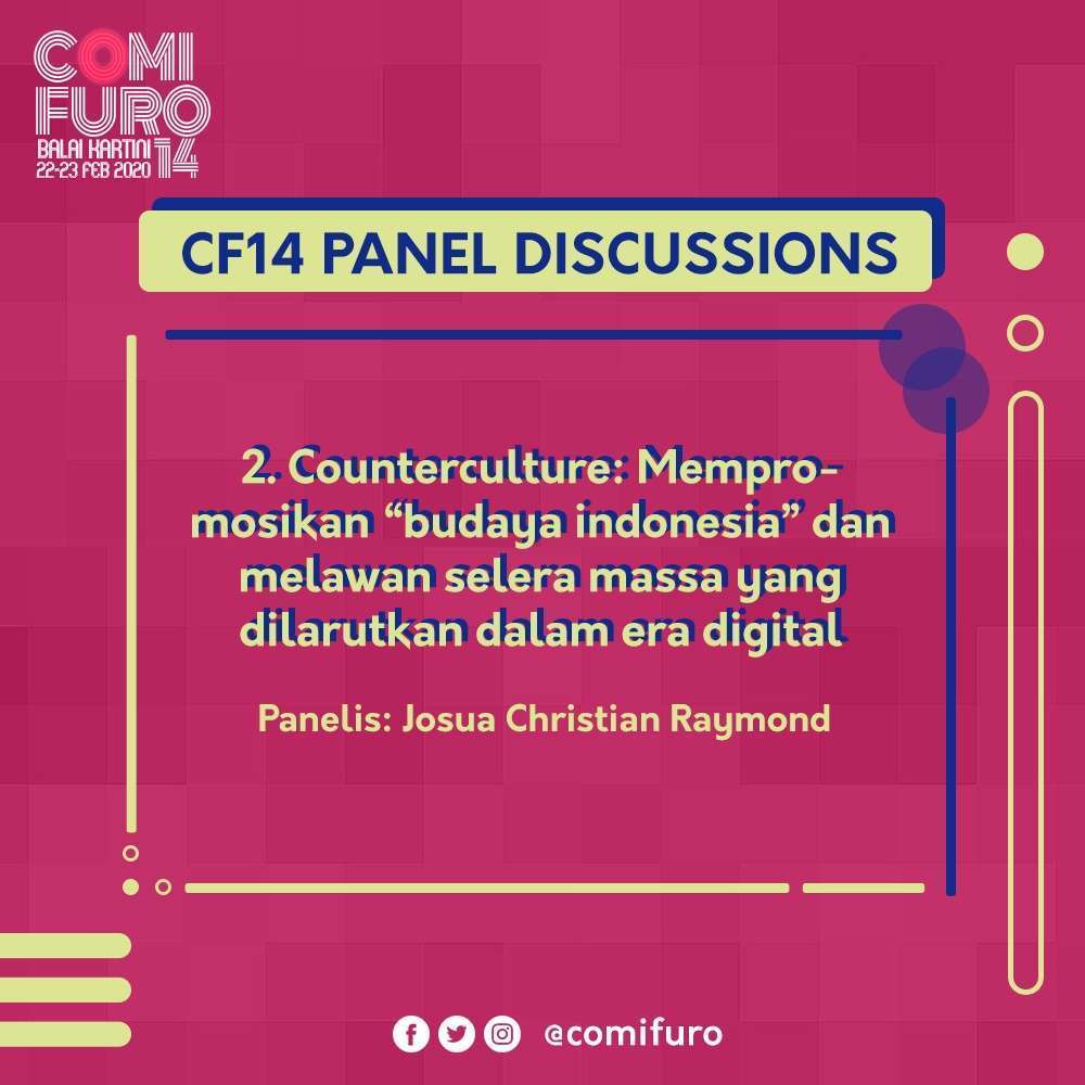 Comic Frontier 14 juga akan menghadirkan berbagai acara dan konten baru di panggung utama. Salah satunya ada kesempatan para insan kreatif untuk turut serta tampil memeriahkan perhelatan ini dalam konten berjuk diskusi panel yang dilansanakan di panggung utama. Diskusi panel ini dibawakan oleh para panelis dari berbagai macam latar belakang yang diseleksi oleh tim Comic Frontier. Sesi diskusi panel ini diadakan menyambut semakin banyaknya studi ilmiah dan diskusi seputar pop culture yang diadakan baik dalam media forum diskusi, blog, jurnal ilmiah, hingga podcast.