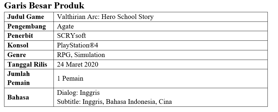 SCRYsoft dan Agate Studio dengan senang hati mengumumkan bahwa Valthirian Arc: Hero School Story akan rilis pada konsol Sony PlayStation 4 versi fisik dan digital di Asia Tenggara pada 24 Maret 2020. Valthirian Arc: Hero School Story dikembangkan oleh Agate, pengembang game dari Indonesia. Game ini adalah game konsol pertama dari Agate, di mana game ini sebelumnya telah menuai kesuksesan di Eropa.