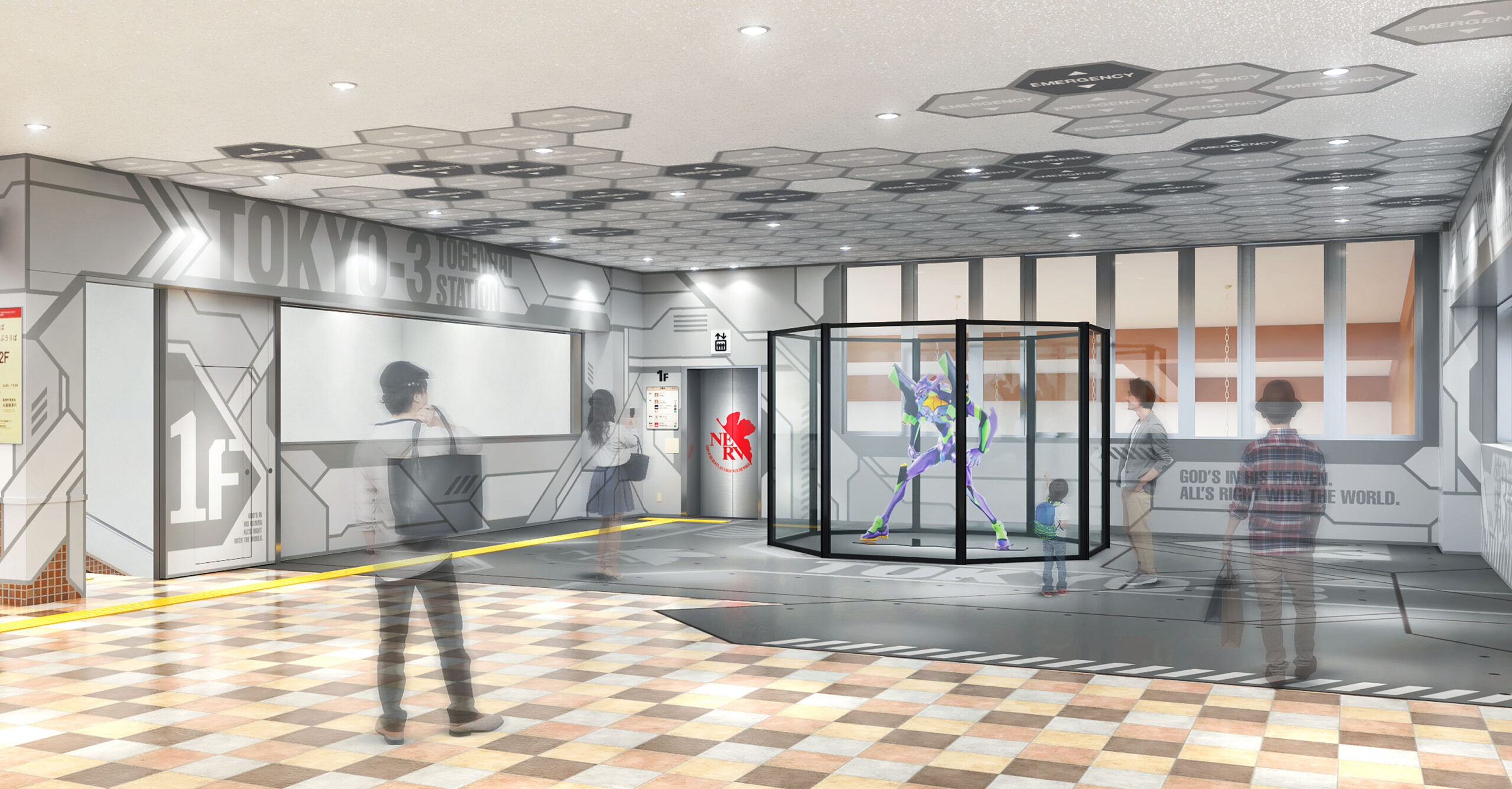 Mulai Jumat, 10 Januari 2020, Stasiun Togendai, yang merupakan stasiun lalu lintas untuk Hakone Ropeway, Kapal Bajak Laut Hakone, Bus Hakone Tozan, dan Bus Expressway Odakyu Hakone, akan dinamai “Stasiun New Tokyo-3 City” dan didekorasi dengan desain gaya kantor pusat Nerv. Selain itu, sosok “Eva-01” sebesar 2 meter juga akan dipamerkan.