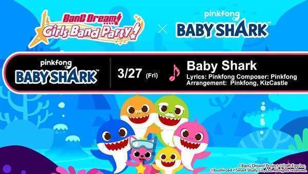BanG Dream!, proyek media mix mengenai grup band anak perempuan ternama ini sebagaimana telah diberitakan sebelumnya, akan menjalin kolaborasi dengan Pinkfong Baby Shark. Kolaborasi ini berupa lagu Baby Shark yang akan dimuncukan di gim ponsel rhythm BanG Dream! selama tanggal 27 Maret hingga 17 April 2020. Kini menginjak tanggal 27 Maret 2020, lagu Baby Shark akhirnya telah bisa dimainkan. Mari intip seperti apa performa lagu ini di gim BanG Dream!, baik dalam tingkat kesulitan Easy, Normal, Hard, maupun Expert: