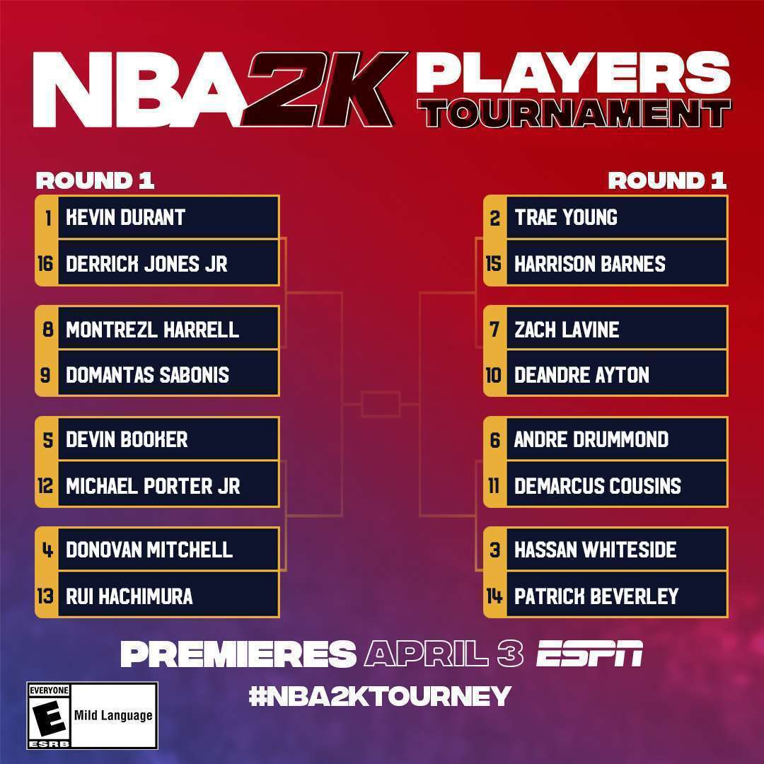 2K, National Basketball Association (NBA), dan National Basketball Players Association (NBPA) mengumumkan “NBA 2K Players Tournament”, sebuah kejuaraan NBA 2K20, yang melibatkan 16 pemain aktif NBA. Turnamen ini akan dimulai pada Jumat (3/4) waktu setempat di ESPN dan ESPN2. Pemain NBA, termasuk pemain papan atas, seperti, Kevin Durant dari Brooklyn Nets dan Trae Young dari Atlanta Hawks, akan bertanding dalam player-only tournament dengan sistem gugur (single-elimination) di platform Xbox One. Pemenang akan dinobatkan sebagai juara utama NBA 2K20 dan berkesempatan memilih badan amal yang akan menerima sumbangan senilai 100.000 dolar AS dari 2K, NBA dan NBPA untuk mendukung upaya penanganan virus corona.