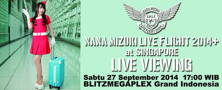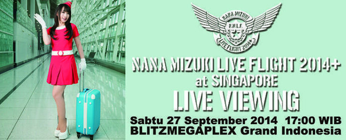 Jaringan bioskop Blitzmegaplex bekerjasama dengan Rajakarcis Live Viewing Japan selaku promoter konser Nana Mizuki di Singapura akan mengadakan Live Screening dari konser terbaru penyanyi asal Jepang Nana Mizuki yang diselenggarakan di Singapura bertajuk NANA MIZUKI LIVE FLIGHT 2014+ at Singapore LIVE VIEWING. Live Screening akan diselenggarakan pada hari Sabtu 27 September 2014 pukul 17.00 WIB bertempat di Blitzmegaplex Mall Grand Indonesia.