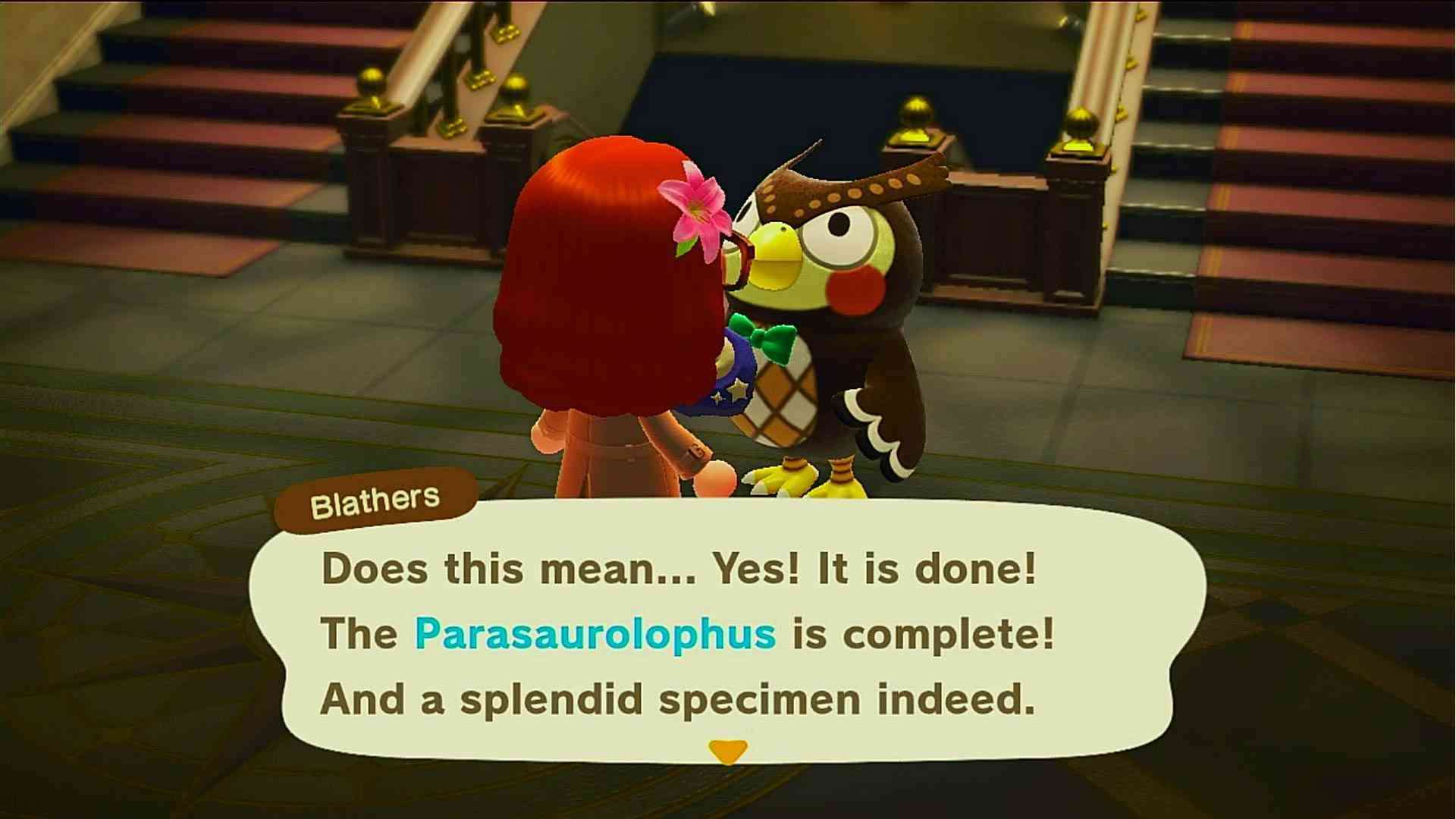 Menangkap berbagai spesies serangga hingga ikan, tentu memberikan tantangan sendiri, di mana kalau di gim Pokemon terkenal dengan slogan “gotta catch’em all!“. Kali ini hal tersebut dapat diterapkan juga di gim ini. Namun bukannya menangkap semuanya sekaligus, di Animal Crossing setiap spesies hanya akan muncul pada jam tertentu dan musim tertentu saja, sehingga sangat tidak mungkin kalian akan melengkapi seluruh koleksimu dalam satu hari saja. Akan tetapi tidak perlu khawatir karena setiap kali kamu berhasil menangkap sebuah spesies baru atau menemukan fosil baru, hasil tersebut dapat didonasikan di museum pulaumu untuk dilihat sebagai spesimen di sana. Menurut saya inilah nilai tambah dari museum dalam menampilkan hasil tangkapan ataupun temuan fosilmu. Melihat hasil kerjamu dipajang dengan indahnya memberikan kesan indah terhadap perjuanganmu menemukan suatu spesies atau fosil langka. Keunikannya kalian dapat melihat tanggal berapa kamu memberikan donasi tersebut, sehingga saya berpikir hal itu pas jika sudah di masa yang akan datang untuk mengingat kapan saya pernah menangkap ikan, serangga, atau fosil langka tersebut dengan penuh perjuangan.