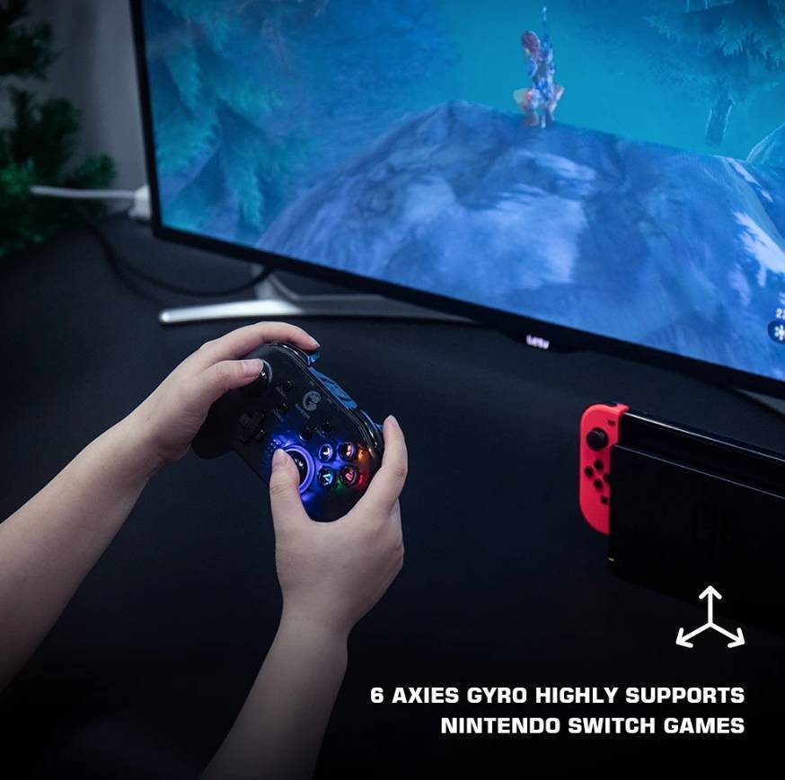 Untuk para pengguna Nintendo Switch, gamepad GameSir T4 Pro sudah dilengkapi dengan fitur 6 Axies Gyroscope. Fitur ini tentunya sangat berguna guna memberikan movement yang lebih akurat serta pengalaman bermain game yang seutuhnya. Fitur ini bisa digunakan untuk berbagai game unggulan di Nintendo Switch seperti The Legend of Zelda: Breathe of the Wild dan juga Mario Kart 8.