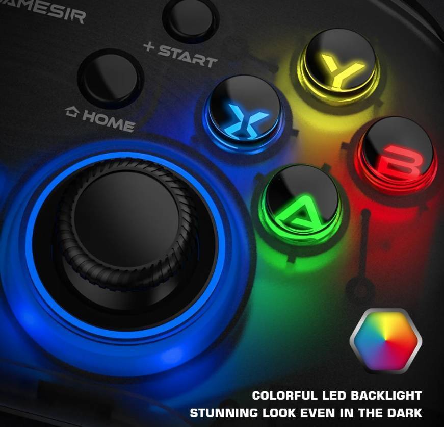 Gamepad ini memiliki desain yang futuristik. Seluruh body gamepad terlihat transparan dan terdapat LED backlight di beberapa tombol seperti XABY serta analog di sebelah kanan. Berbicara soal analog, gamepad ini sudah dilengkapi dengan anti slip soft rubber caps agar analog tidak licin saat digunakan. Tombol LT dan RB di gamepad ini linear yang mampu meningkatkan keakurasian saat mengontrol game yang kamu mainkan. Terutama saat kamu bermain game bergenre racing.
