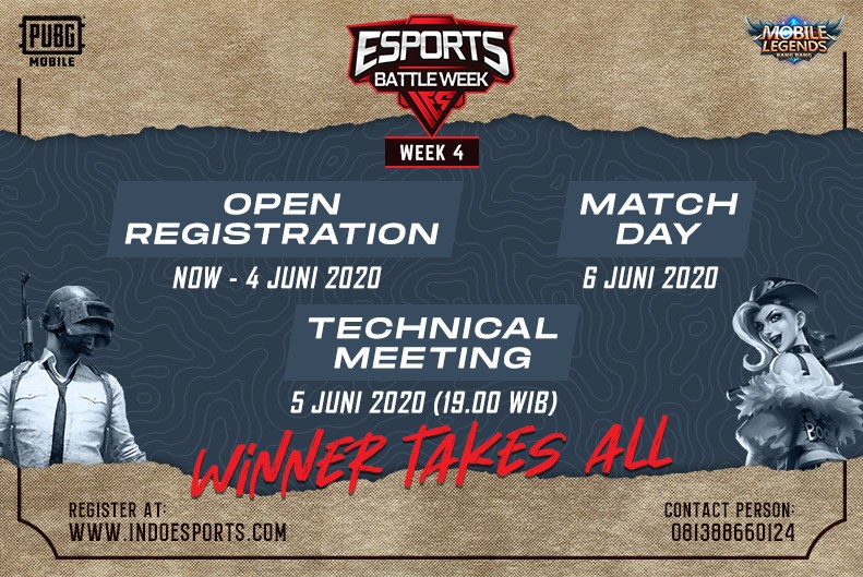 Di minggu keempat ini periode pendaftaran akan dibuka cukup lama. Jadi, sobat gamers memiliki waktu lebih banyak untuk mempersiapkan tim dan mengikuti kompetisi ini. Biaya pendaftarannya juga sangat terjangkau loh, sobat gamers! Nah, berikut ini adalah jadwal Esports Battle Week #4. Jangan sampai dilewatkan ya sobat gamers!