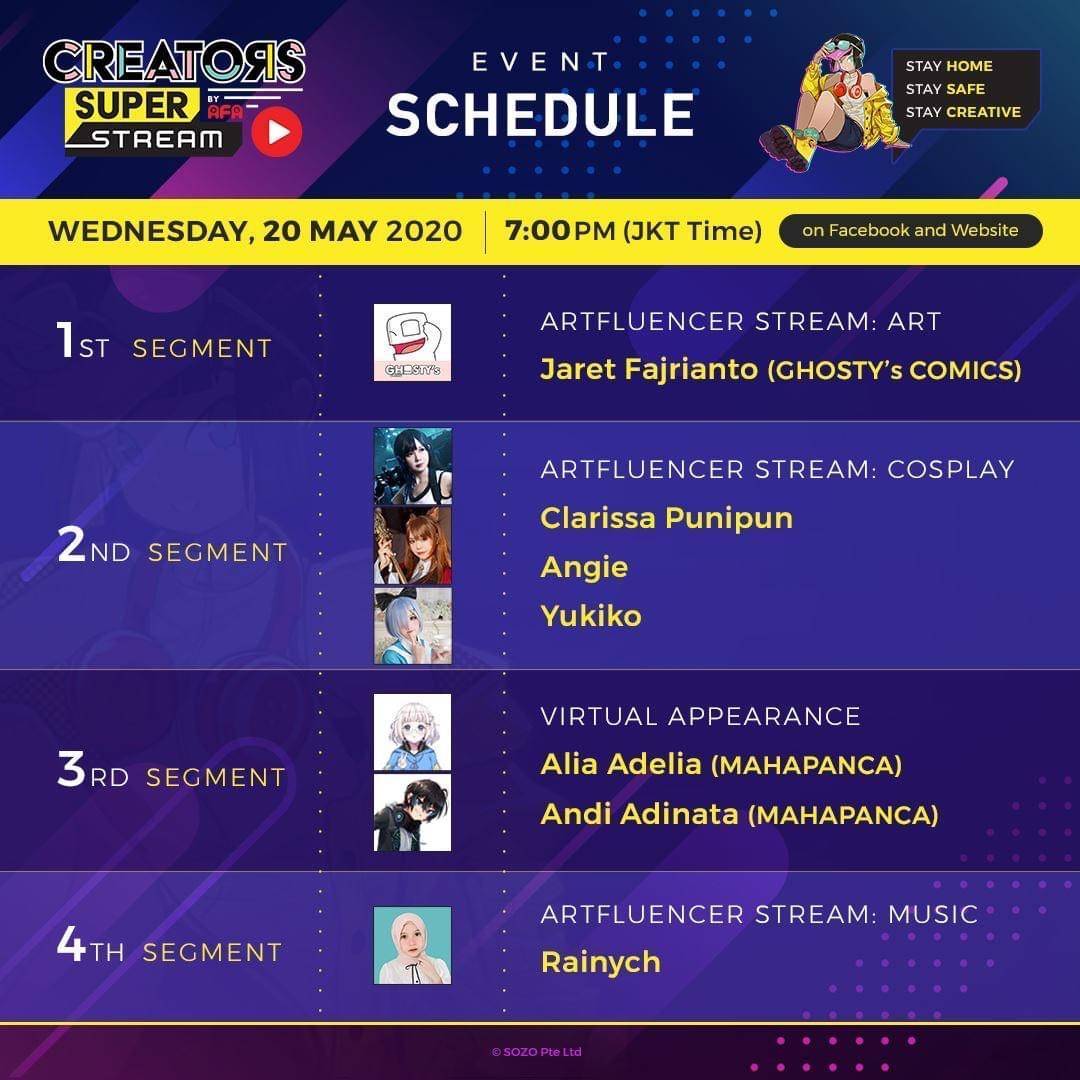 Acara Creators Super Fest dengan Format ONLINE (LIVE) pertama kalinya dengan nama CREATORS SUPER STREAM sukses tayang perdana, pada hari Rabu, 20 Mei 2020 19:00 WIB.