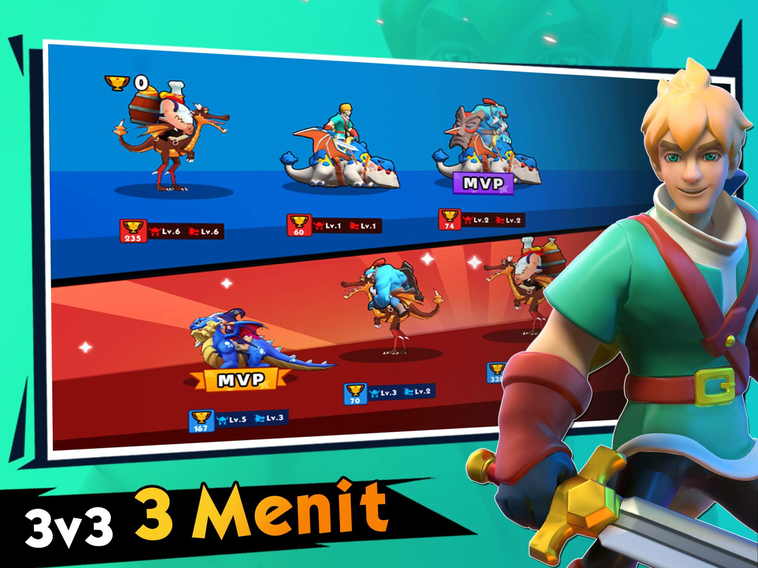 Bosan main MOBA atau malas se-game terlalu panjang? Dragon Brawlers cocok untukmu! Dalam battle 3 lawan 3, game bergenre action dengan sentuhan MOBA dan battle royale ini hanya memakan waktumu sebanyak 3 menit per battle. Sistem pencarian lawan yang kilat memudahkan pemain push rank tanpa menunggu terlalu lama.