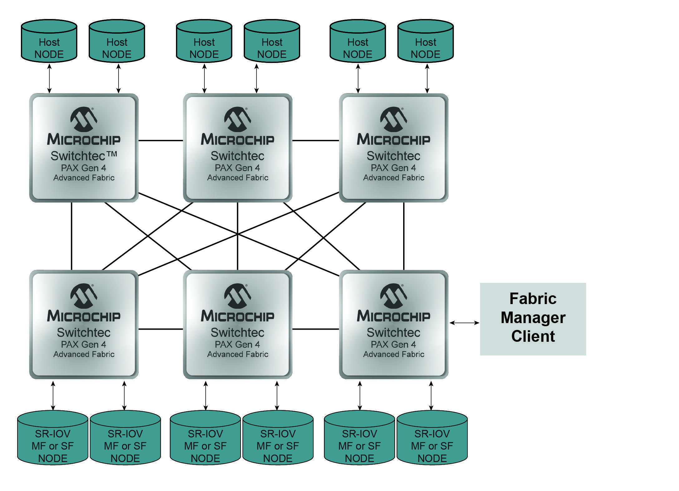 Famili switch Microchip Switchtec PAX PCIe PCIe menyediakan solusi turnkey fabric dan mengurangi waktu untuk sistem yang membutuhkan pembagian multi-host untuk Single Root I/O Virtualization (SR-IOV) Non-Volatile Memory (NVMe) Solid State Drives (SSDs), GPU (Graphics Processing Unit), dan endpoint PCIe lainnya.