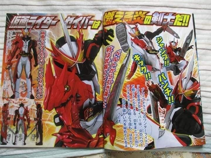 Sebagaimana telah diberitakan sebelumnya, Kamen Rider Saber yang merupakan seri Kamen Rider kedia di era Reiwa ini pada akhirnya mulai ditampakan wujudnya di scan majalah Terebi-kun di Jepang. Sesuai yang digambarkan pada scan majalah tersebut, seri Kamen Rider Saber hadir dengan konsep ksatria pada masa lampau dari wilayah barat dengan tema buku dongeng sebagai gimmicknya. Sesuai dengan namanya, sang Kamen Rider akan berubah menggunakan pedang. Di samping memiliki form basic yang bertemakan elemen api dan naga, berikut ini beberapa form lainnya dari si Saber ini dan juga kehadiran Second Ridernya, yang bernama Kamen Rider Blaze.