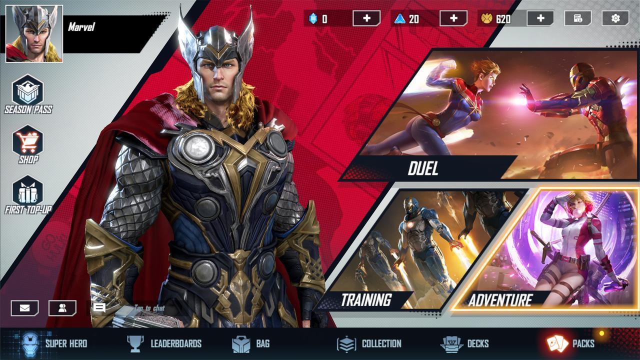 Tujuh karakter mengagumkan — Iron Man, Thor, Spider-Man, Captain Marvel, Hela, Star-Lord, dan Elektra — semuanya menghias halaman awal permainan kartu mobile baru ini. Model 3D yang istimewa, menyoroti setiap tekstur pada pakaian Spider-Man, setiap garis pada armor Iron Man, bahkan kilauan emas dari cahaya Captain Marvel. Saat pertandingan berlangsung, kamu bisa melihat melihat gaya andalan mereka saat melakukan pose klasik dan gerakan ikonik.