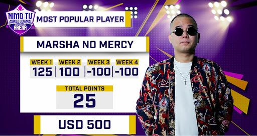 Selain tiga juara utama, ada predikat Most Popular Player berhadiah 500 USD yang berhasil diperoleh oleh Marsha.