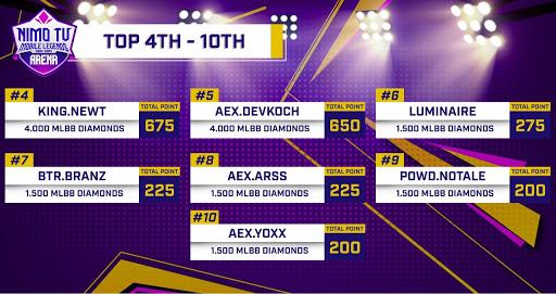 Setelah berjalan selama empat pekan, rangkaian acara Nimo TV Mobile legends: Bang Bang Arena (NMA) Star Battle akhirnya selesai digelar dan sang juara pun telah ditentukan.