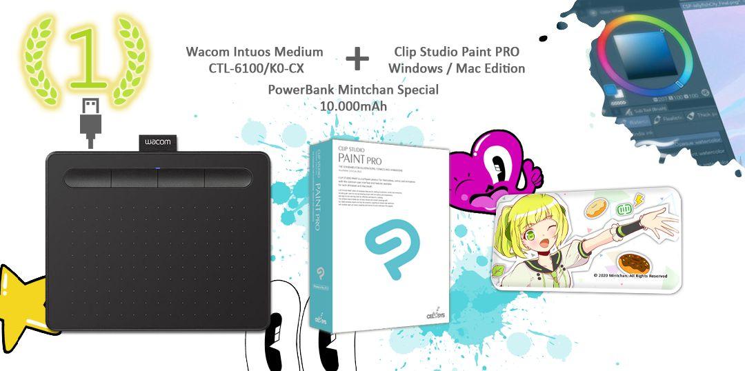 Untuk juara lomba fanart Mintchan, hadiah utama adalah Wacom Intuos Medium CTL-6100/K0-CX, lisensi Clip Studio Paint PRO (Win/Mac) dan PowerBank Exclusive Mintchan sebesar 10.000 mAh. Pemenang kedua akan mendapatkan lisensi Clip Studio Paint PRO (Win/Mac), Figure 363 Saber Alter dan PowerBank Exclusive Mintchan sebesar 10.000 mAh. Pemenang ketiga akan mendapatkan Clip Studio Paint PRO (Win/Mac), Figure QposketCinderella dan PowerBank Exclusive Mintchan sebesar 5.000 mAh.