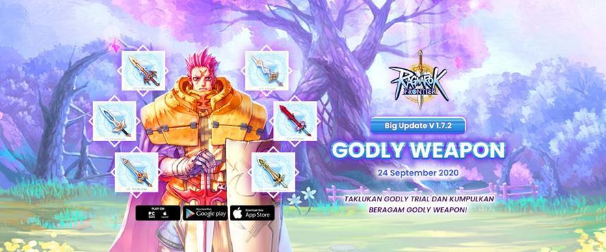 Di bulan September ini, Ragnarok Frontier menghadirkan kembali versi update terbarunya yaitu versi 1.7.2 dengan judul Godly Weapon pada tanggal 24 September 2020 mendatang. Pada update terbarunya kali ini Ragnarok Frontier menghadirkan senjata terkuat yang pernah dibuat oleh Dewa yang pernah digunakan di peperangan antar para Dewa di masa silam yang hancur berkeping-keping dan pecahannya tersebar di seluruh penjuru Midgard.