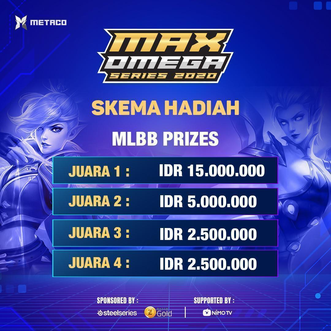 Turnamen MAX Omega Series 2020 disponsori oleh Steelseries dan Razer Gold, serta didukung oleh NimoTV.