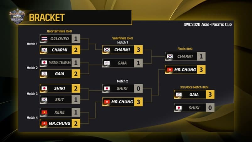 Pada Piala Asia-Pacific ‘SWC2020’, MR.CHUNG menjadi Juara 1, CHARMI Juara 2, dan GAIA Juara 3, dan ketiga pemain menjadi wakil Asia-Pacific untuk Final SWC 2020 yang akan diadakan 22 November 2020 mendatang.