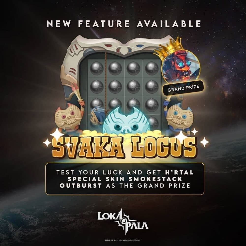 Selain itu, ada fitur terbaru dari Lokapala yaitu Svaka Locus. Fitur ini menarik banget karena kamu bisa menguji keberuntunganmu untuk bisa memenangkan Grand Prize berupa Skin spesial Ksatriya H’rtal yaitu skin Smokestack Outburst.