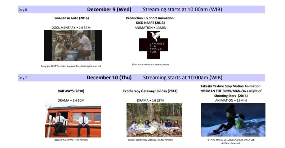 Berikut kami sertakan jadwal tayang JFF Plus: Online Festival di Indonesia: