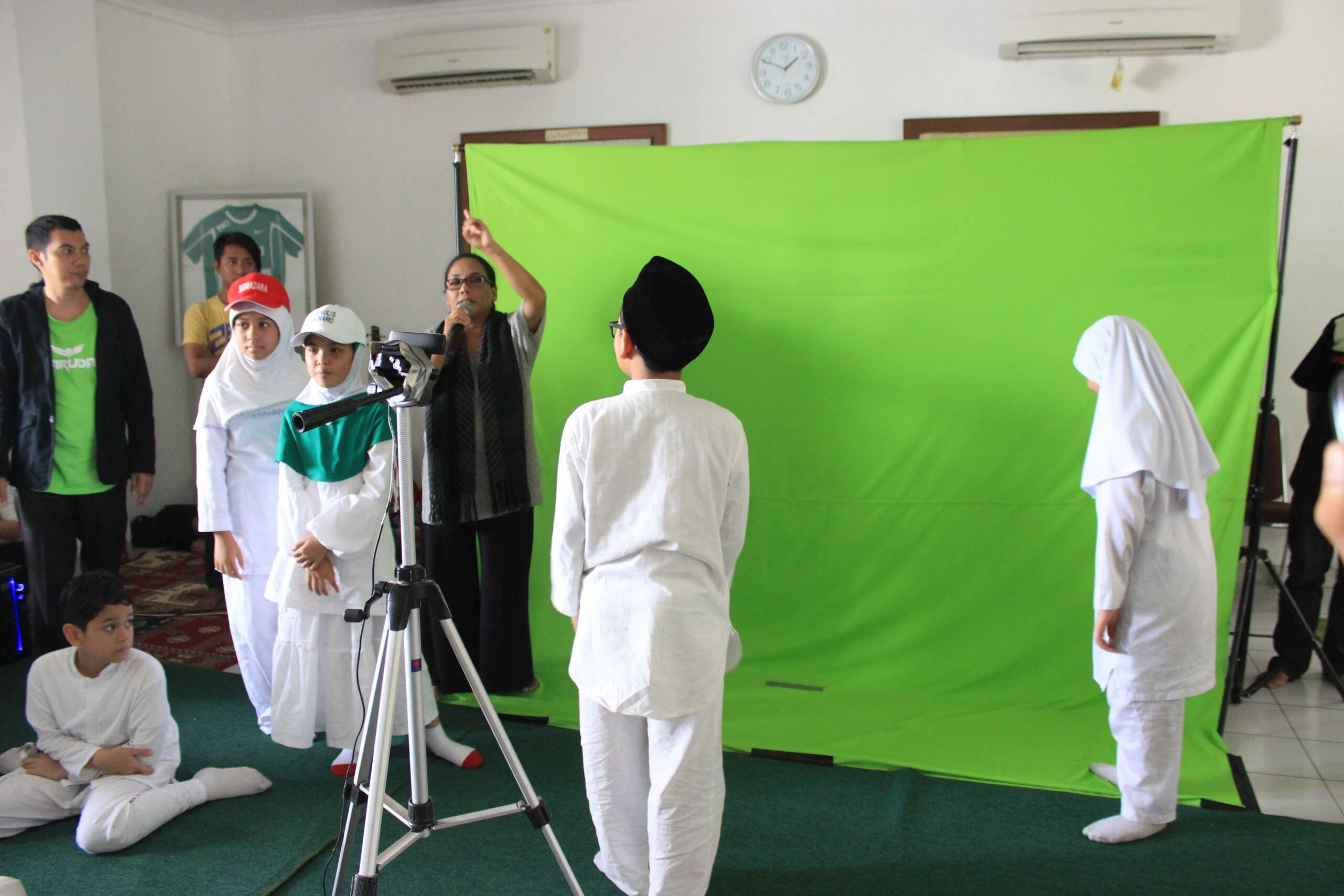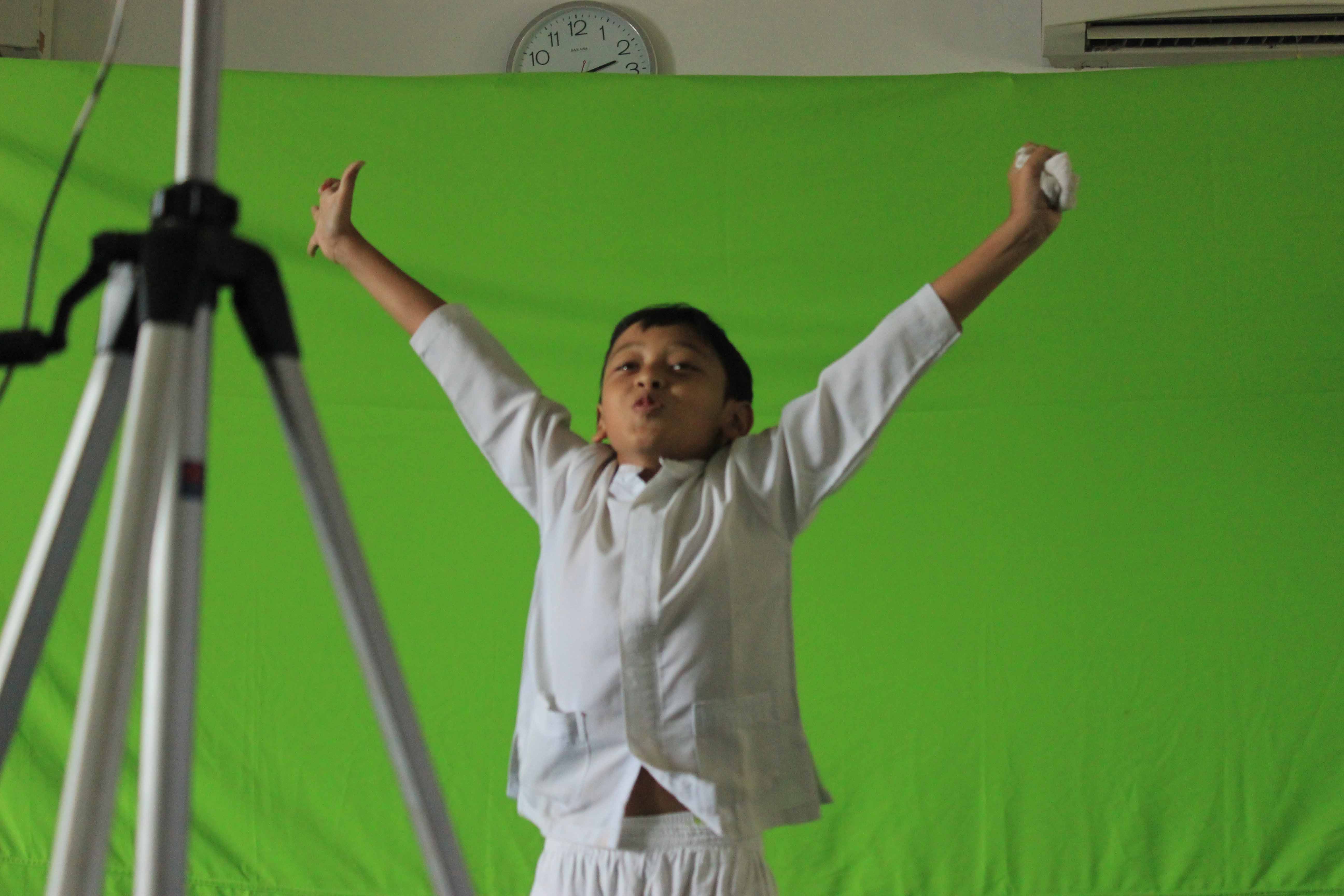 Murid-murid terlihat antusias saat mencoba berakting di depan layar hijau. Para murid menunjukkan beberapa adegan aksi yang sesuai dengan efek CG yang sedang ditampilkan.