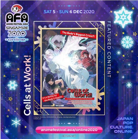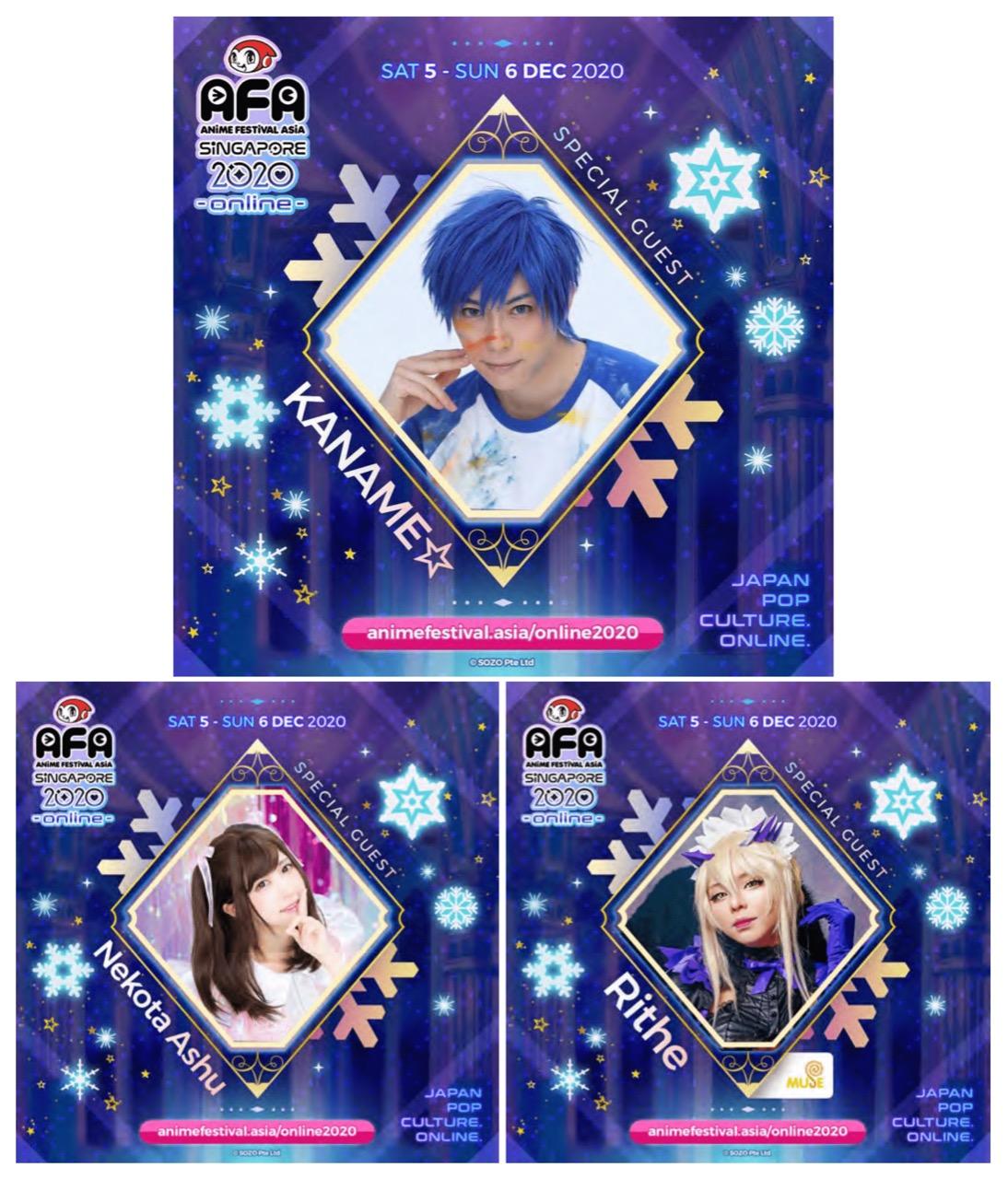Selain artis anisong, event AFA Singapore 2020 Online juga akan menampilkan bintang tamu cosplayer papan atas, yaitu Kaname, Nekota Ashu, dan Rithe. Dan juga seperti pada tahun-tahun sebelumnya, perhelatan ini akan kembali menayangkan film anime secara spesial. Anime yang ditayangkan secara khusus di event ini adalah Cells at Work!