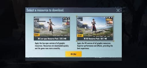 Karena dengan fitur tersebut, para pemain bisa memilih konten atau isi apa saja yang ingin di-install sesuai kebutuhannya. Saat memulai game para pemain bebas memilih diantara 2 paket sumber daya spesifikasi, yaitu spesifikasi rendah dan spesifikasi HD.