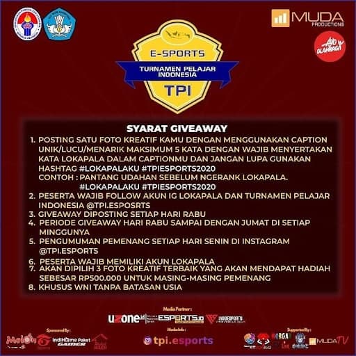 - Peserta wajib follow akun IG Lokapala dan Turnamen Pelajar Indonesia @tpi.esports.