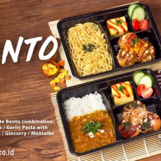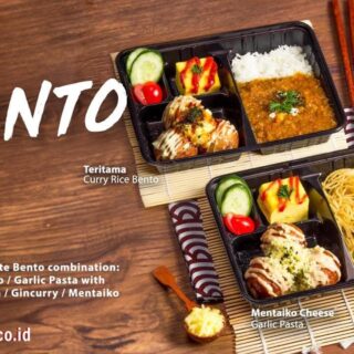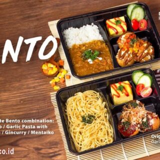 Tersedia 2 varian Bento yaitu Rice Bento dan Garlic Pasta Bento: