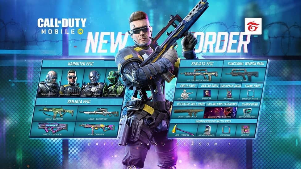 Saatnya melangkah ke masa depan dengan Call of Duty: Mobile – Battle Pass Season terbaru dari Garena ‘New Order’. Buka Premium Battle Pass musim ini dan mainkan berbagai karakter epik dari David Mason yang ikonik, Spectre, Prophet, dan FTL yang telah lama ditunggu! Senjata baru juga telah disiapkan untuk memulai perjalanan baru, termasuk Epic FR .556 yang serba baru, dan 4 senjata favorit penggemar lainnya seperti HBRa3, HG40, Cordite, dan Locus. Selesaikan Battle Pass season ini dan dapatkan CP untuk mendapatkan yang berikutnya secara gratis.