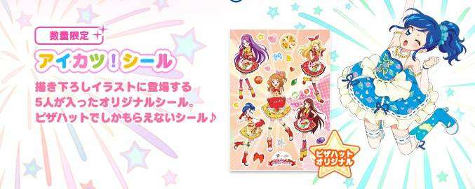Menyambut versi Movie dari seri game arcade dan anime Aikatsu, Pizza Hut memulai promosi spesial dengan seri tersebut . Mulai dari tanggal 27 Oktober sampai 31 Januari 2014, para fans di Jepang bisa memesan box Pizza spesial dengan ilustrasi khusus dengan 5 karakter anime ini, Akari, Ichigo, Aoi, Ran dan Mizuki, untuk kolaborasi yang satu ini. Paket Pizza yang bisa dipesan dengan box tersebut di antaranya adalah paket Family 4 dan Natural 4.