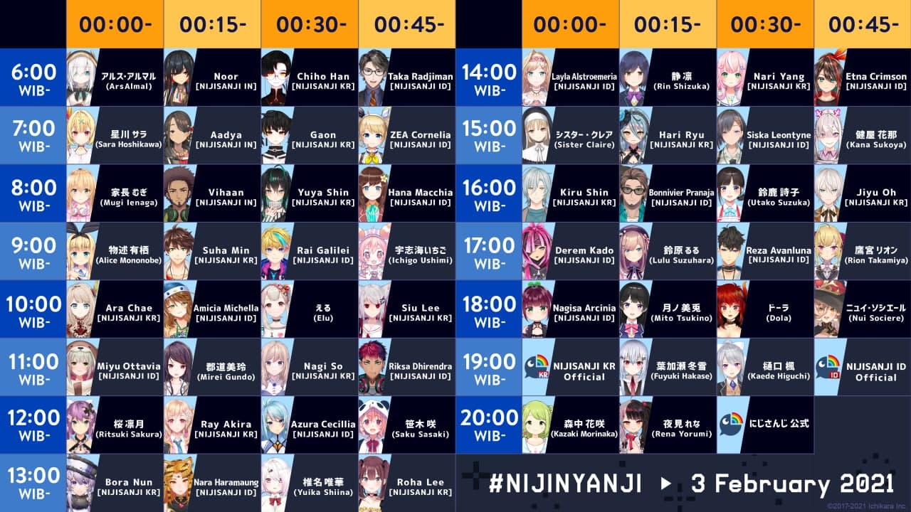 Proyek ini akan dilaksanakan pada tanggal 3 Februari 2021 (Rabu) dengan sistem relay YouTube Premiere yang dimulai dari pukul 06.00 WIB hingga pukul 20.30 WIB dengan waktu premiere 15 menit setiap channelnya. Video #NIJINYANJI dengan panjang kurang lebih 3 setengah menit akan di publish di setiap channel Virtual Liver yang berpartisipasi.
