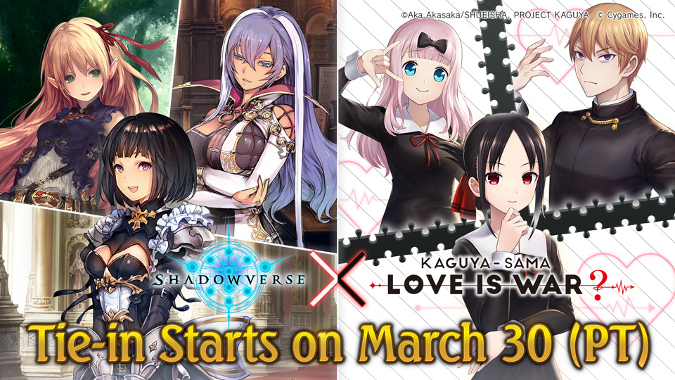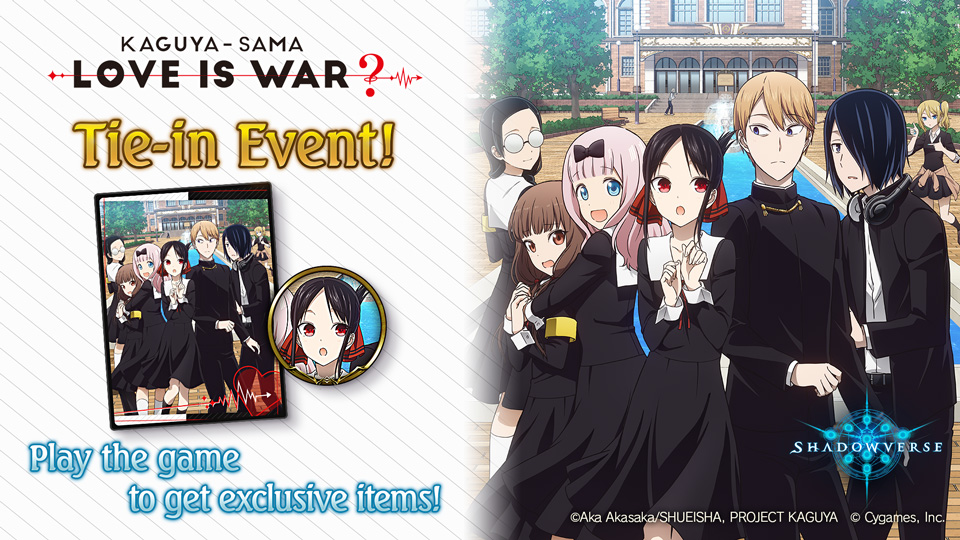 Tak disangka-sangka, kali ini terdapat kolaborasi dengan seri komik dan anime Kaguya-sama: Love is War. Biasanya jika Shadowverse mengadakan kolaborasi dengan serial yang masih berhubungan dengan aksi (kecuali dengan serial idol) kali ini dengan genre romantis komedi yang sangat populer di penggemar Jejepangan.