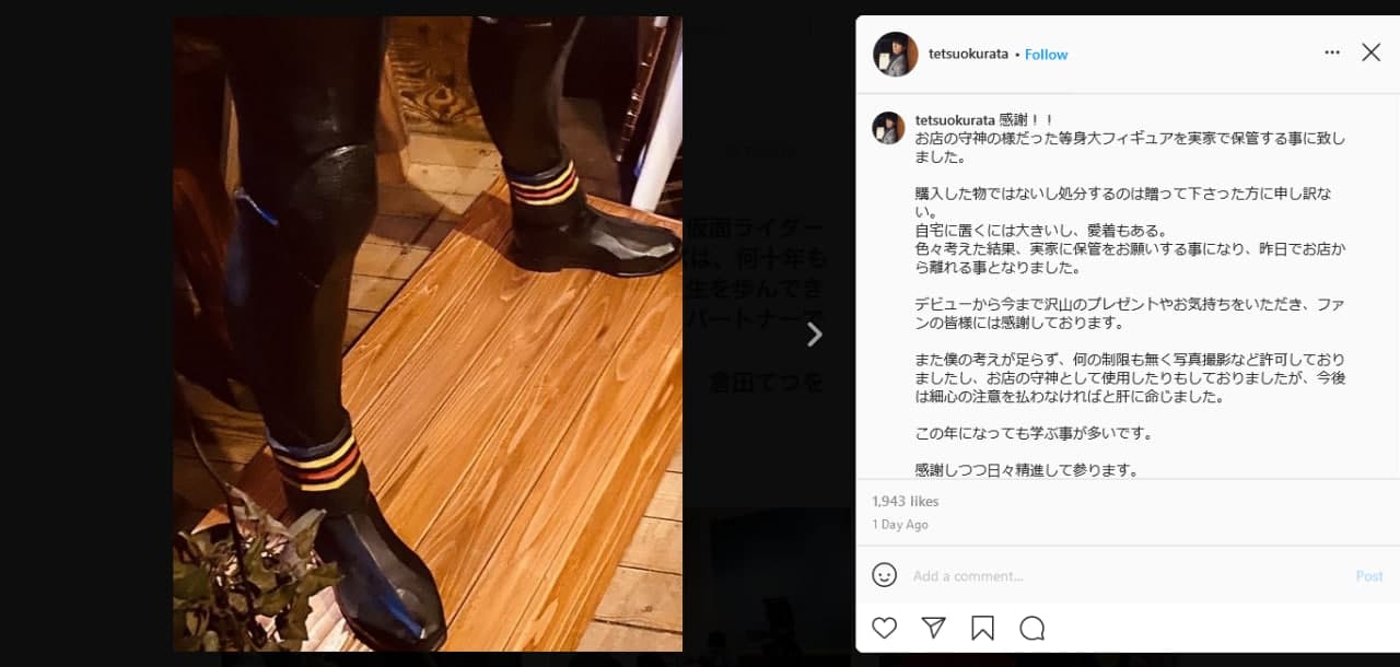Melalui akun instagram resminya, Tetsuo Kurata, aktor asal Jepang di balik seri Kamen Rider Black atau Satria Baja Hitam mengumumkan bahwa ia telah memindahkan patung Satria Baja Hitam yang ada di restoran miliknya, Billy the Kid, dipindah ke rumah orang tuanya. Ia juga meminta maaf terhadap orang yang membuatkan patung tersebut untuknya. Karenanya, ia memutuskan untuk memindahkan patung tersebut ke rumah orang tuanya, karena patung tersebut dirasa terlalu besar untuk ditaruh di rumahnya. Selain itu, ia juga menyebutkan bahwa masih banyak hal yang harus ia lakukan ke depannya.