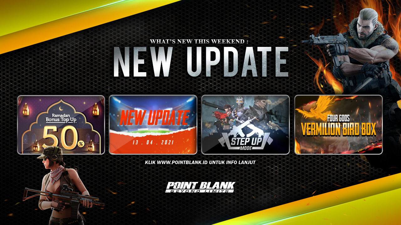 Untuk info lebih lengkap mengenai update Point Blank minggu ini, kamu bisa lihat di sini Tunggu apa lagi, jangan sampai ketinggalan! Tonton juga Live Streamingnya dan mainkan Point Blank Beyond Limits!