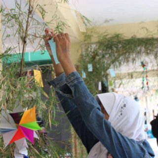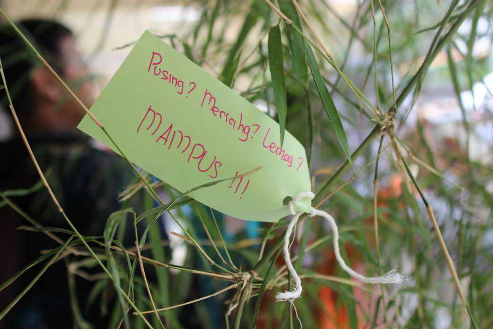 Tidak jauh dari booth yukata, terlihat sebagian pengunjung yang sedang menulis di secarik kertas kecil dan menggantungnya di pohon bambu yang dipasang di selasar. Dengan membayar Rp1000, pengunjung sudah dapat menuliskan tanzaku, kertas harapan yang digantung di pohon yang telah disediakan. Berbagai doa dan permohonan pun digantung disini, mulai dari yang penuh harapan, hingga yang sedikit nyeleneh pun tergantung disini.