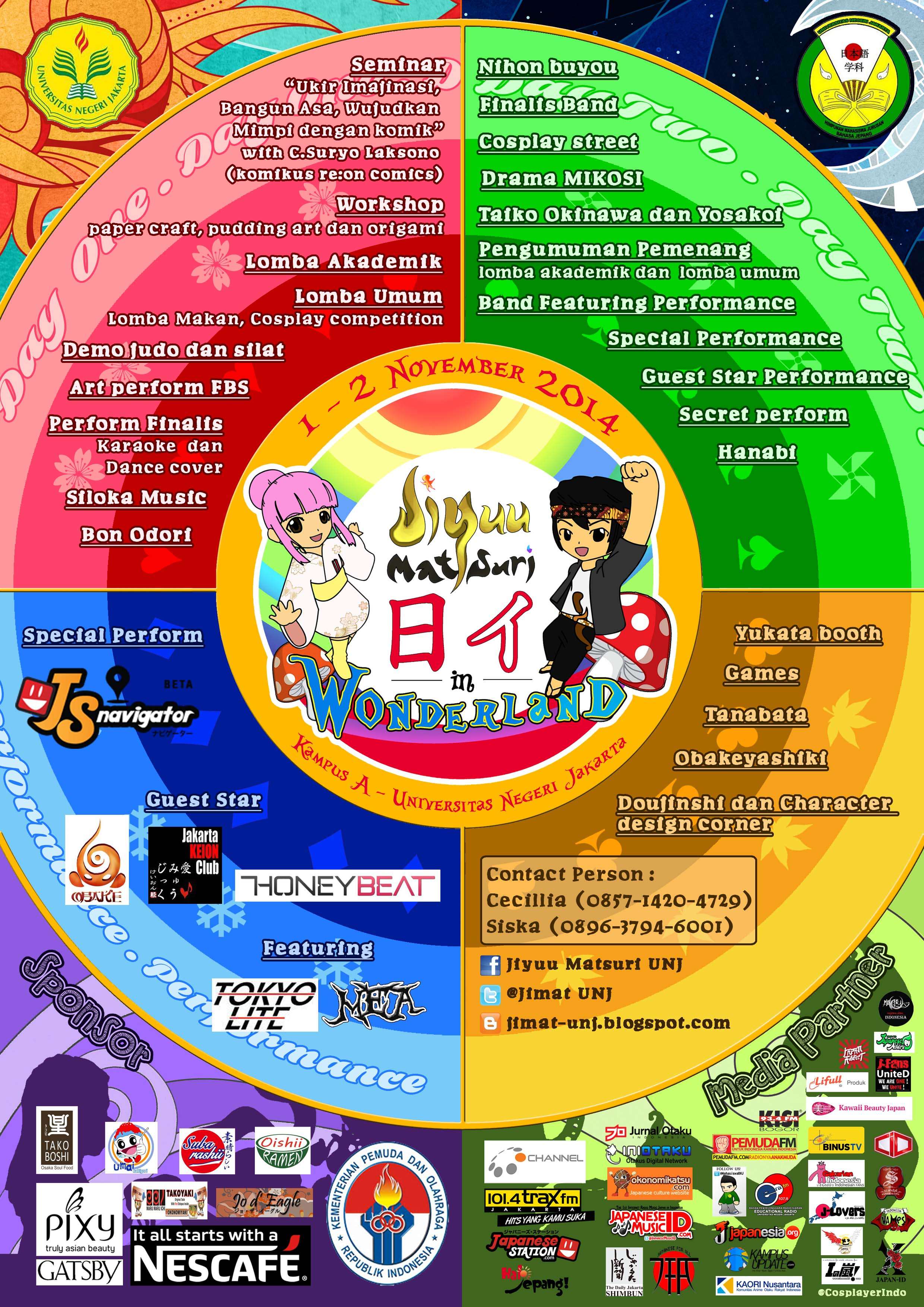 Acara dengan tema日イ in Wonderland (Nichi-I in Wonderland), Jepang-Indonesia dalam Dunia Fantasi ini berlangsung pada hari Sabtu & Minggu, 1-2 November 2014. Sejak pagi hari, para pengunjung sudah mulai memadati area Jiyuu Matsuri. Sekitar pukul 9 pagi, terlihat beberapa pengunjung yang sudah mulai mengantre di pintu masuk.