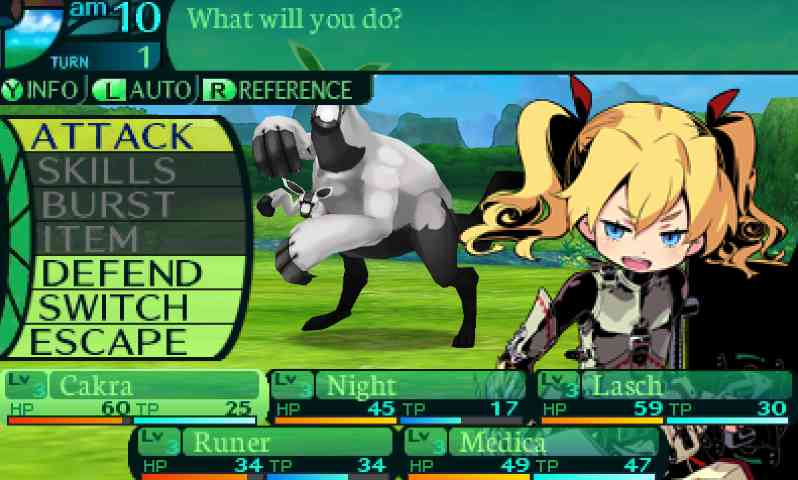 Burst sendiri merupakan skill yang menggantikan skill Limit dari gim sebelumnya, di mana semua karakter dalam party pemain dapat mengakses skill ini selama pertarungan. Akan tetapi kemampuan dari skill ini tetap bergantung dengan jumlah karakter yang mengaktivasinya dan juga kemampuan mereka pada saat itu. Skill ini sangat berguna sekali dalam pertarungan terutama bila melawan mini-boss dan boss level. Lebih dari itu, sistem pertarungan dalam gim ini tidak jauh berbeda dengan gim sebelumnya. Setiap pertarungan terasa melelahkan karena pemain harus menggunakan strategi yang baik agar dapat terus mengeksplorasi area tersebut. Pengaturan penggunaan TP dan Item juga perlu dipikirkan dengan baik seiring berjalannya waktu. Namun setidaknya dengan adanya visual 3D ini pertarungan dengan monster yang memerlukan jeda dalam serangannya terasa lebih mudah karena adanya aba-aba dan pemain dapat dengan mudah melakukan pertahanan dengan segera.