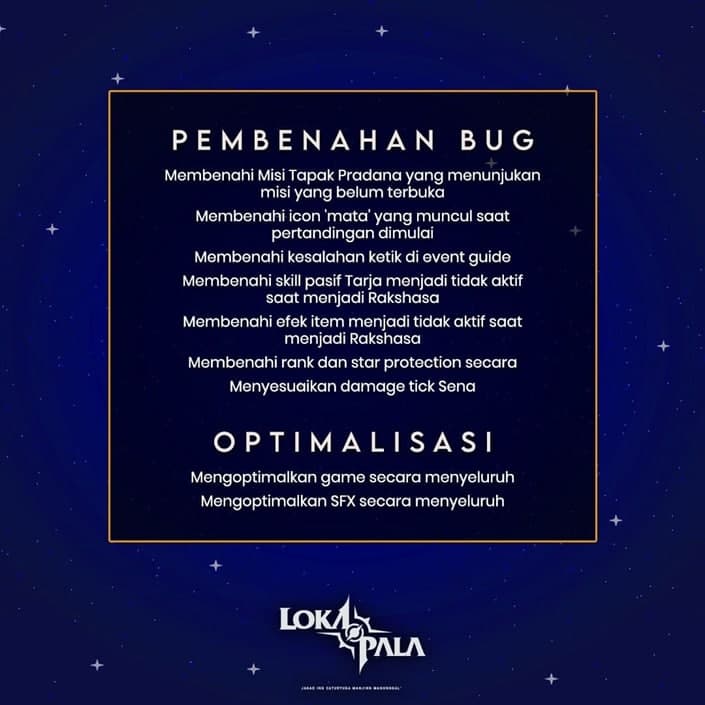 Adapun update pembenahan bug di Lokapala, antara lain: