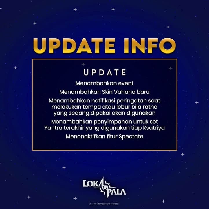 Sedangkan untuk update info dari game Lokapala, antara lain: