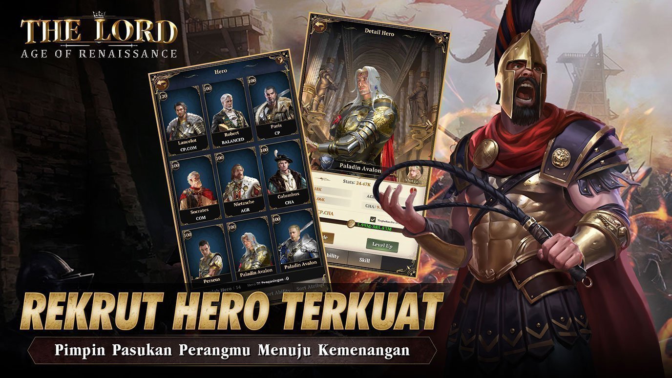 Pada game The Lord : Age of Renaissance, pemain akan berperan menjadi Baginda Raja yang memerintah dan memimpin sebuah Kerajaan. Dalam perjalanan takdirmu memimpin dan membangun Kerajaan, pemain akan ditemani oleh beragam tokoh sejarah yang fenomenal, mulai dari Lancelot Knigts of Round Table, Leonidas of Sparta, hingga Alexander The Great yang akan berperan sebagai Hero di Kerajaanmu. Setiap Hero memiliki karakteristik dan keahlian khususnya masing-masing, seperti misalnya dalam hal menangani urusan diplomatik, mengelola bisnis dan perdagangan, hingga memimpin ribuan pasukan di medan pertempuran.