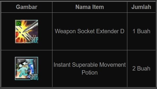 Hadiah Senjata sesuai Job Akhir sebagai berikut: