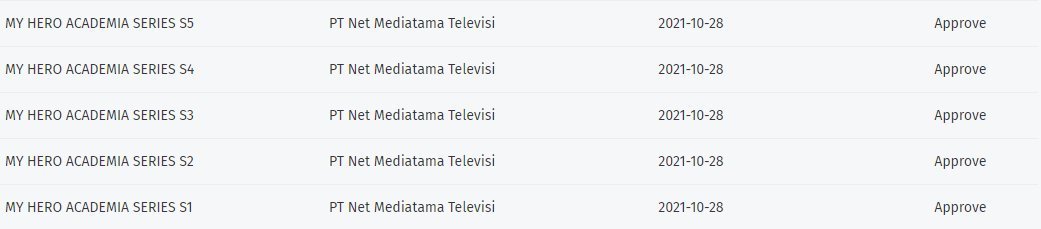 Kini terungkap informasi bahwa NET rupanya tengah berambisi untuk menayangkan anime ini hingga 5 season. Hal ini terungkap dalam data Surat Rekomendasi Import Film dari Perizinan Pusbang Film Kemdikbud yang mencatat bahwa My Hero Academia telah didaftarkan oleh NET hingga season 5, dan semuanya sudah dalam status Approved. Padahal di Jepang sendiri hingga saat ini season kelima tersebut masih berjalan hingga bulan November 2021 mendatang.