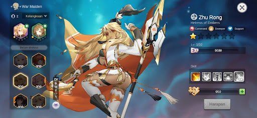 Ada juga Zhu Rong yang menjadi salah satu war maiden paling langka. Zhu Rong merupakan War Maiden dengan tingkat kekuatan paling tinggi dan memiliki banyak skill. War Maiden ini berwarna emas dimana tentunya menjadi War Maiden yang memiliki tingkatan warna paling tinggi kelangkaannya.