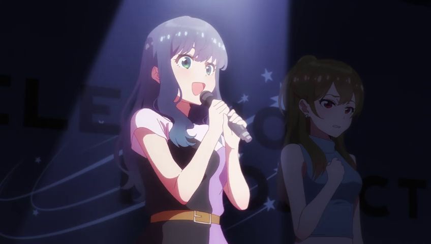 Episode pertama dari anime ini diawali dengan cerita klasik idol mengenai idol yang terkenal menginspirasi idol baru. Bagi saya sendiri sih saya tidak terlalu mempermasalahkannya akan tetapi saya terkadang merasa bosan dengan alur ini. Satu hal yang menarik dari cerita anime ini adalah adanya plot twist yang sangat tidak terduga. Sempat kaget saya dengan arahan episodenya dan bahkan menjadi topik yang menarik untuk dibicarakan bersama teman-teman saya. Terlepas dari itu, saya pikir ada dua hal yang sangat saya acungkan jempol dari anime ini adalah visual ilustrasi yang sangat wah dan lagu yang enak sekali untuk didengar. Bagaimana tidak melihat visual latar belakang saja dari anime ini sudah cukup memuaskan mata terlebih lagi melihat idol cantik. Selain itu lagunya juga cukup menjanjikan di episode awal ini dan saya sangat menantikan sekali lagu-lagu karakter atau mungkin lagu khusus lainnya di episode yang akan datang.
