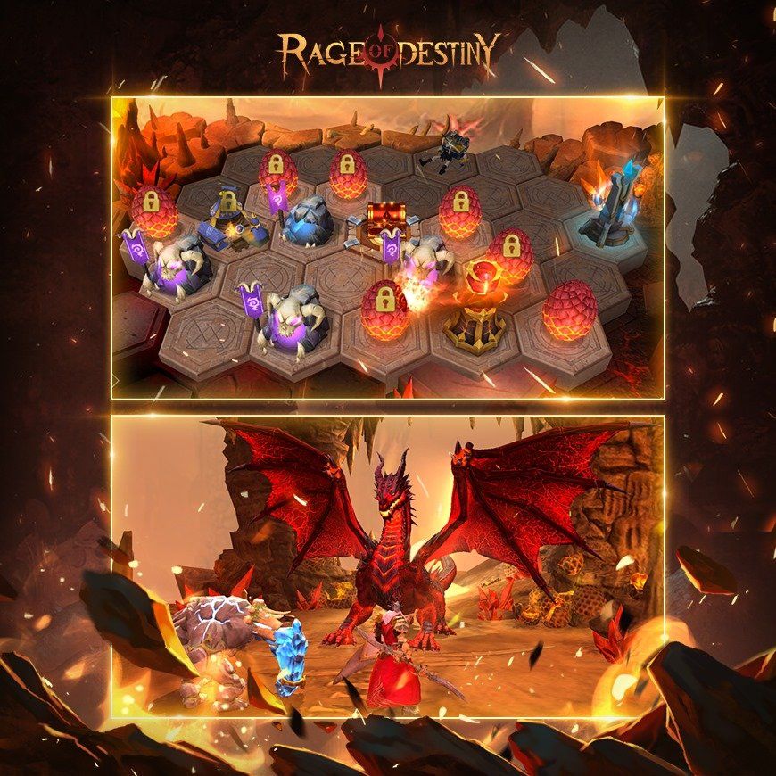 ROD hadir dengan sistem berbasis Roguelike, di mana pemain dapat menjelajah campaign atau fitur lainnya sejauh yang pemain mampu dengan battle yang menggunakan sistem turn-based. Salah satu fitur paling seru di Rage of Destiny adalah Dragon’s Den di mana pemain akan masuk ke sarang naga dan mengambil sumber daya yang ada di sana. Apabila beruntung, pemain bisa bertemu dengan naga api untuk mendapatkan harta karun.