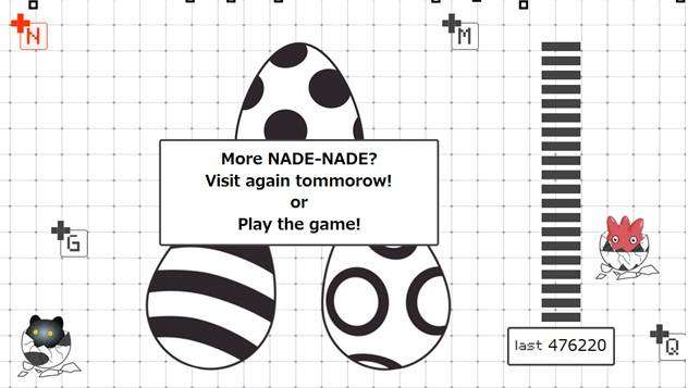 Tidak jauh berbeda dengan sebelumnya, setelah kalian menonton video, kalian akan diarahkan ke sebuah halaman yang memuat animasi sebuah DigiEgg beserta bar dan angka dan sebuah pesan di kanan atas yang dapat diartikan “Jika semua orang NADE-NADE (mengelus) DigiEgg, maka ia akan menetas, Informasi tentang seri terbaru terdapat di dalam DigiEgg tersebut.”