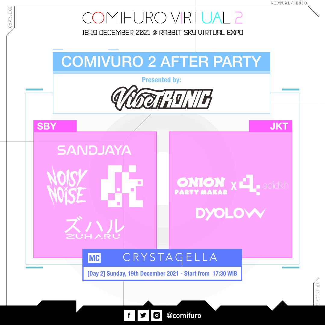 Sudah menjadi tradisi bagi Comic Frontier untuk menutup acara dengan menyelenggarakan DJ Party. Di Comivuro 2, tradisi tersebut kembali dihadirkan di mana akan ada dua DJ Party yang diselenggarakan sebagai penutup acara di masing-masing hari. Di hari pertama acara akan ditutup dengan DJ Party dari Rabbit Sky Virtual Party 2021 yang disiarkan secara langsung laman Twitch Otagroove (twitch.tv/otagroove). Hari kedua acara akan ditutup dengan Comivuro 2 After Party dari grup DJ Vibetronic yang disiarkan secara langsung di laman Twitch Vibetronic (twitch.tv/vibetronic).