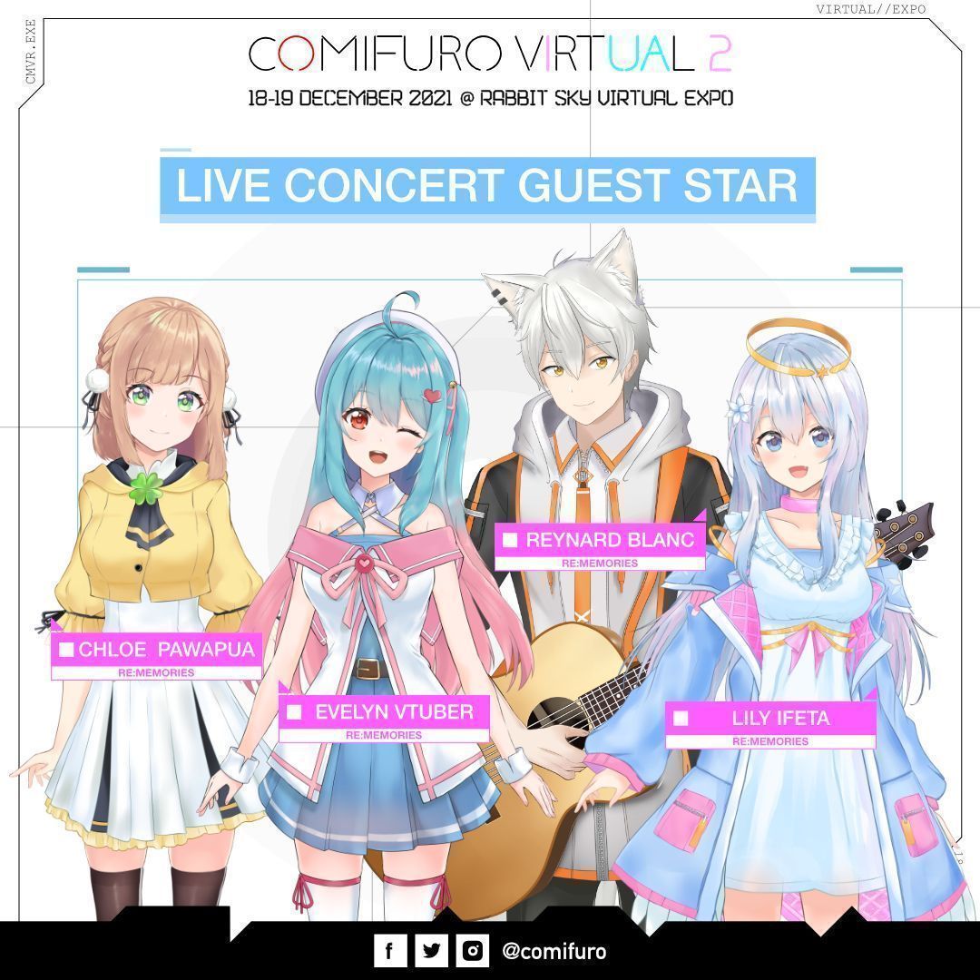 Mengusung konsep virtual, konten acara utama di Comivuro 2 juga diramaikan dengan berbagai talenta virtual. Pada Sabtu, pengunjung akan disambut oleh Mythia Batford sang vampir idol virtual yang menjadi MC di hari tersebut. Virtual live concert juga akan diselenggarakan di hari tersebut dengan penampilan dari Rora Meeza sang kucing alien dari agensi Alterly serta empat sekawan virtual YouTuber (VTuber) dari agensi independen Re:Memories yaitu Evelyn sang pemberi moodbooster virtual, Chloe Pawapua sang penyihir yang tidak bisa melakukan sihir, Reynard Blanc sang siluman rubah tampan serta Lily Ifeta sang malaikat imut yang jatuh ke Bumi.